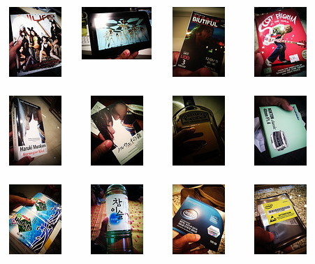 ช่วงหลังๆ นี่ถ่ายรูปโดยใช้กล้องมือถือบ่อย (ใช้โปรแกรม picplz) เพราะว่าไม่ได้พก Lumix GF1 ตัวที่เคยใช้ สังเกตว่าพฤติกรรมการถ่ายรูปของตัวเองเปลี่ยนไปนิดนึง คือจะเลือกถ่าย object เป็นชิ้นๆ มากกว่าจะคิดเรื่อง compose ให้ดูสวยโดยเฉพาะภาพประเภทหยิบของขึ้นมาถ่าย จะมีค่อนข้างเยอะ
