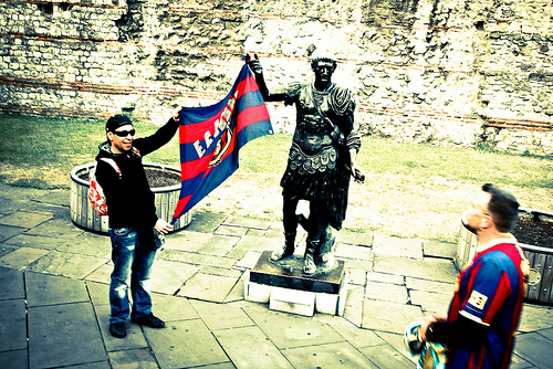 แฟนบอลบาร์เซโลนาที่ยังไม่กลับบ้าน อยู่ฉลองแชมป์กันในลอนดอน พบเห็นได้ทั่วไปตามสถานที่ท่องเที่ยว